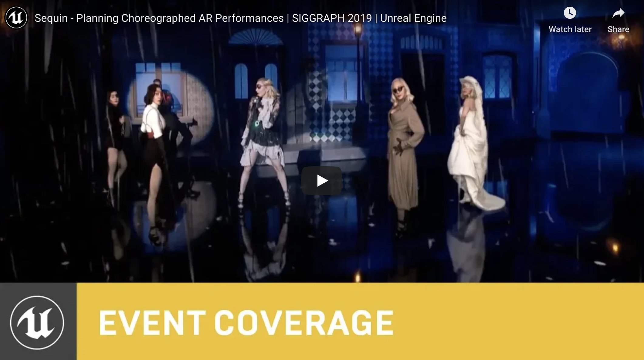 Sequin AR’s Lawrence Jones and Justin LaBroad presented “Using UE4 to plan and execute choreographed performances at Epic Games’ Siggraph booth.